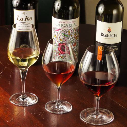 スペインのアンダルシア地方で作られる酒精強化ワイン。独特の風味と香りがあり、食前酒からデザートまで幅広い料理と楽しめます。もしご注文に迷いましたらお気軽にお尋ねください!